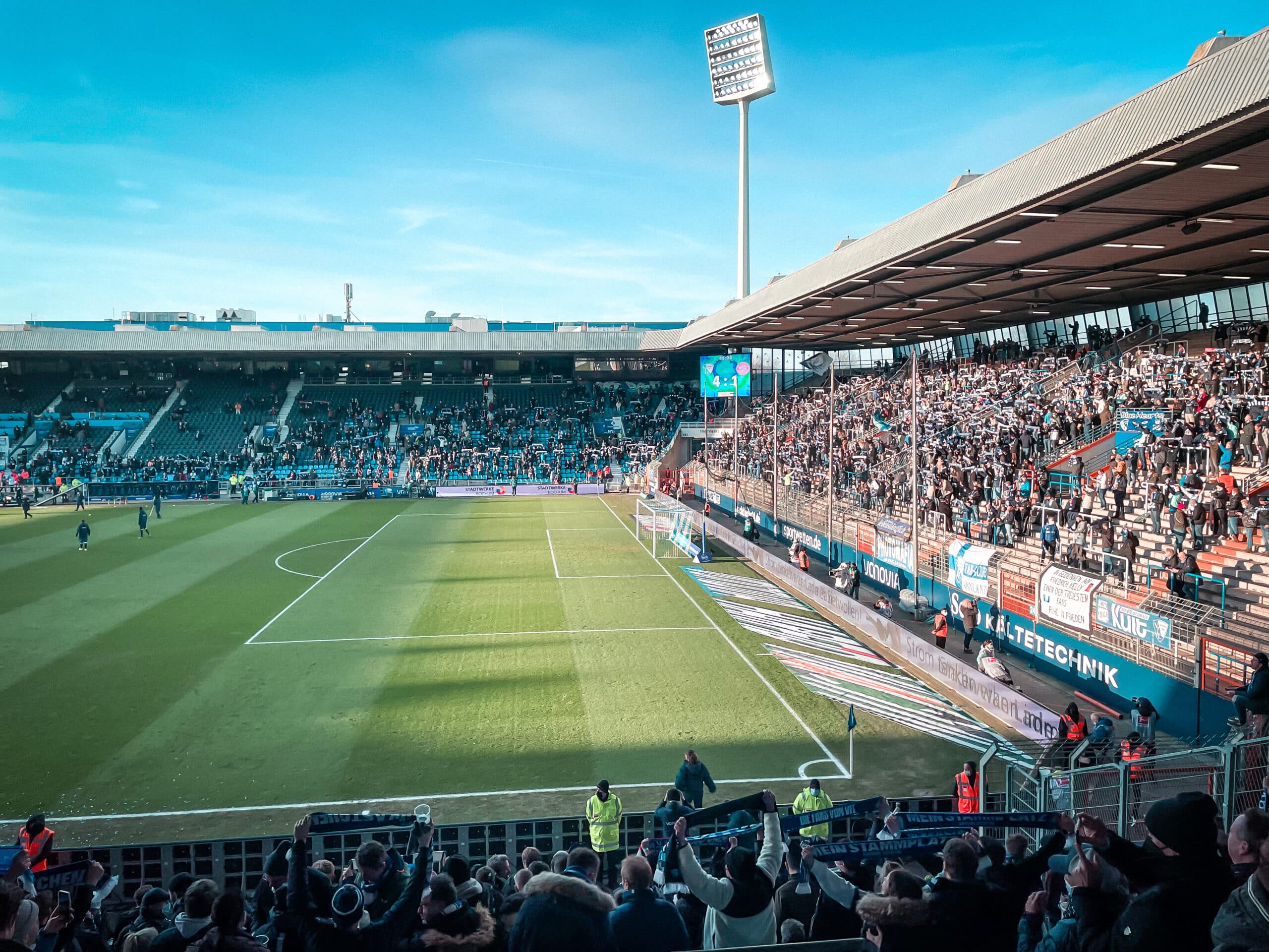 Selbst der Stromausfall im gesamten Stadtteil Grumme konnte der guten Stimmung keinen Abbruch tun. Auch wenn „Bochum“ nicht gespielt werden konnte, kurz vor Spielbeginn, für die laustarke Untermalung des Einmarsches der Mannschaften sorgten kurzerhand wieder die 8.500 Fans.